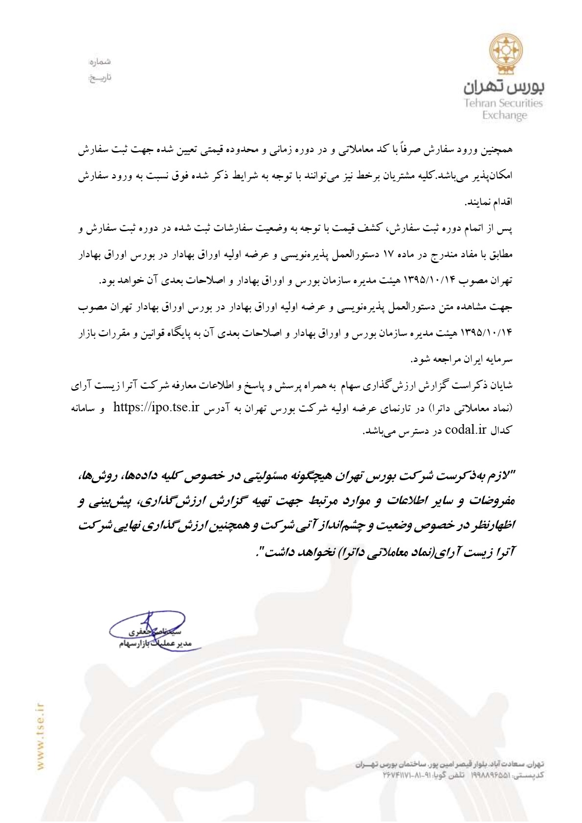 جزئیات عرضه اولیه شرکت آترا زیست آرای (داترا):