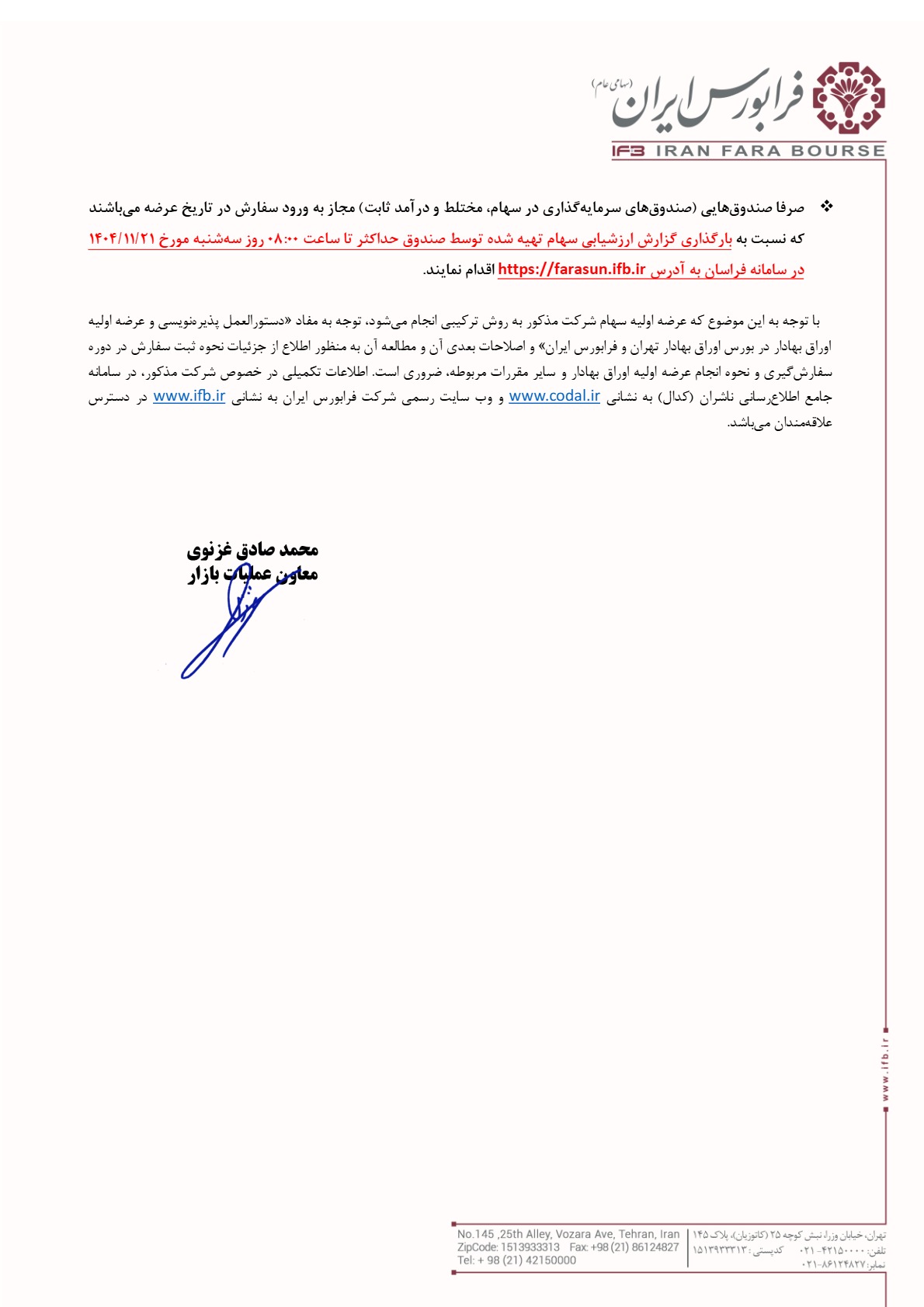 زمان ثبت سفارش نیروترانسفو: سه شنبه مورخ 1404/11/21